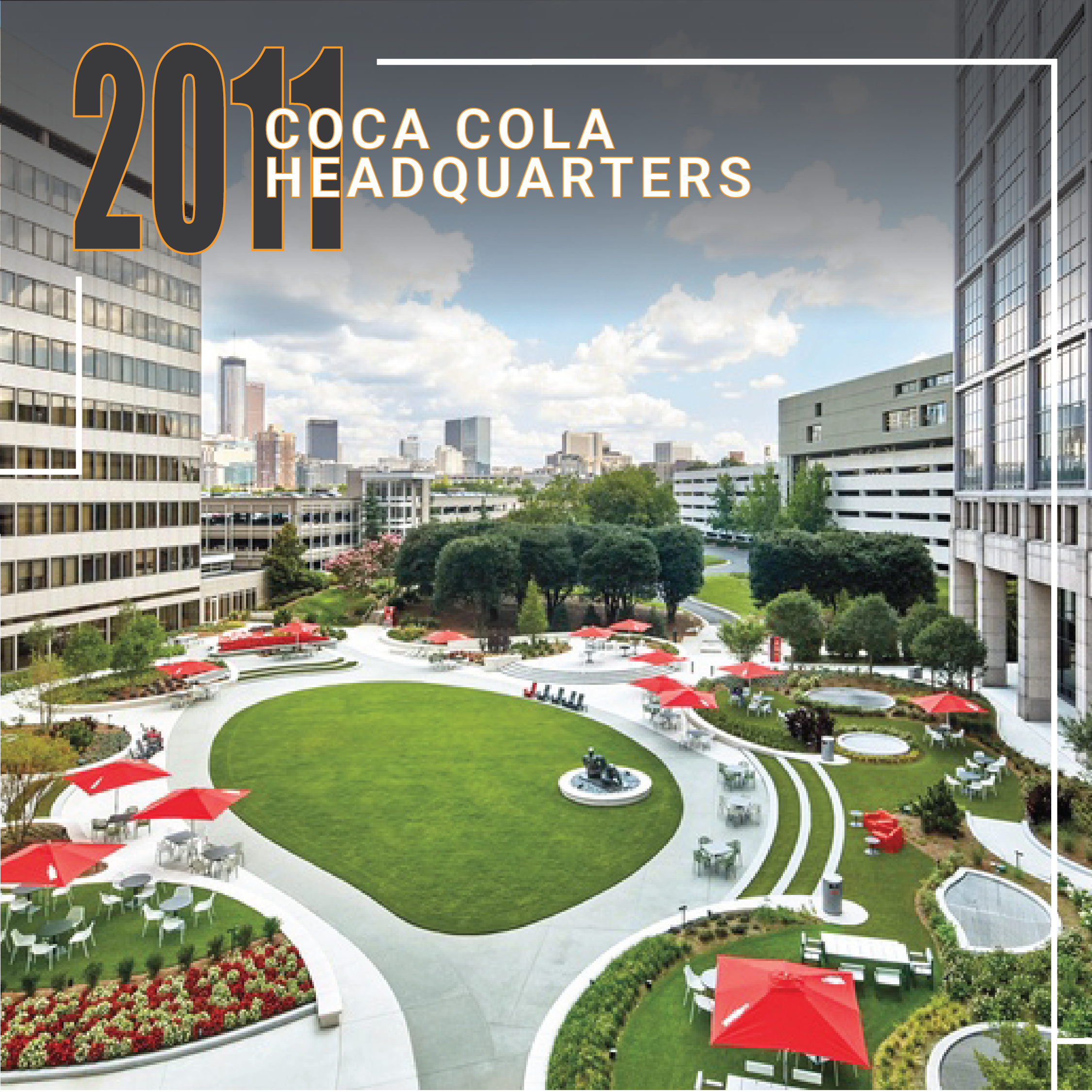 BRAND-TAILORED DESIGN – For Coca-Cola’s corporate headquarters, HGOR created a place representing the iconic, bubbly brand’s persona through relevant and modernized shapes and tones. The exterior areas were strategically designed to support various company experiences, social interactions, and programmable events.