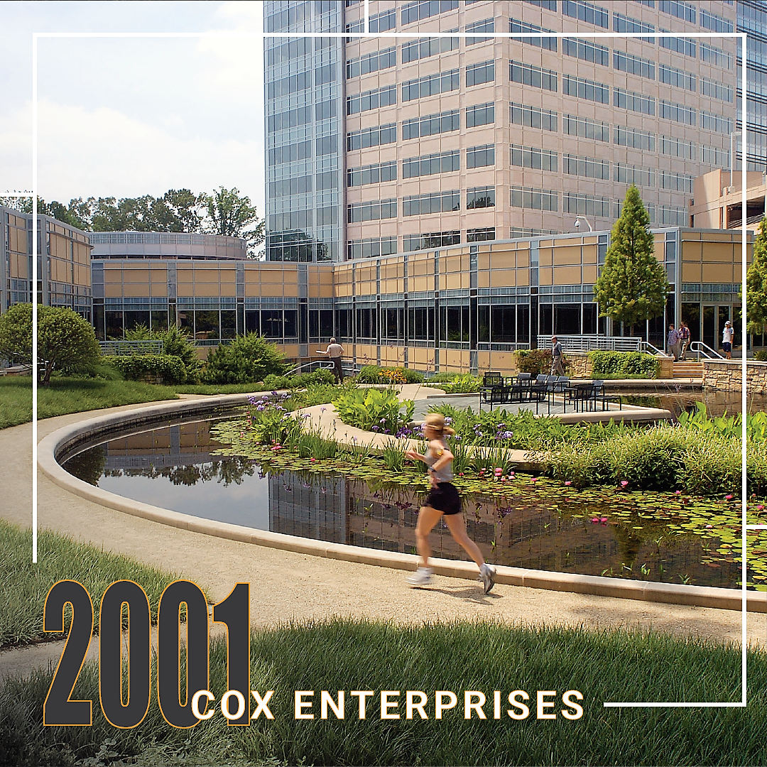 Cox Enterprises‘ vision for a dynamic exterior space to serve as a setting for recreation, relaxation, and respite was met with a design that truly delivered! Utilizing innovative design concepts, HGOR created a 3-acre central space comprised of a private garden, outdoor dining and meeting spaces, and an area for large employee gathering events. The contemporary design combines formal shapes and free lines and features a circular pond as its central component – an exciting composition that aligns perfectly with the company’s progressive nature. The GA Chapter of ASLA awarded this project a 2008 Honor Award.