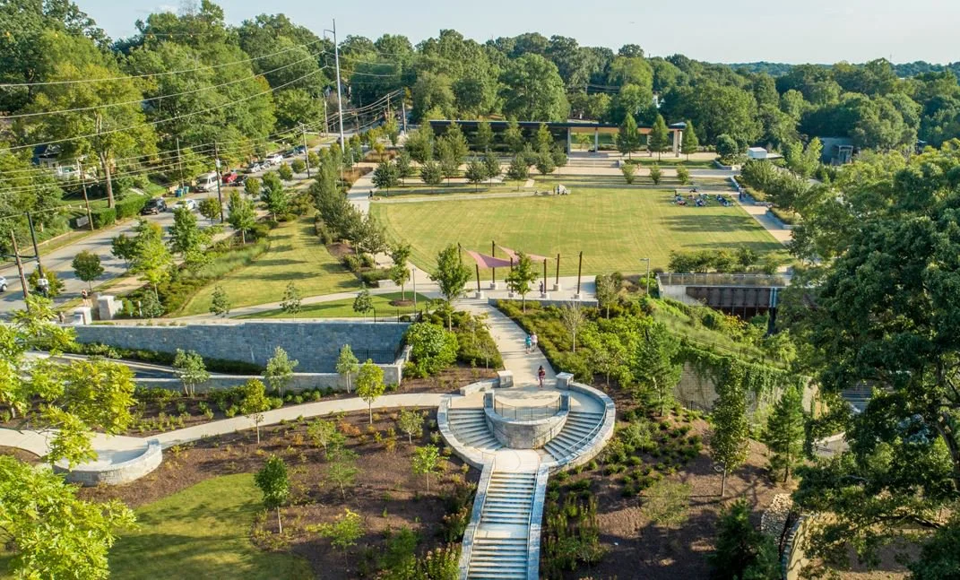 Anticipating Atlanta’s largest public gathering space’s transformative impact on the city, HGOR’s planning and designs for Westside Park resulted in an Honor Award for General Design. The project included community engagement and prioritized a thorough understanding of the site and its history to create a welcoming urban park oasis that bridges the gap between the city’s east and west sides. The project’s framework capitalizes on the park’s natural attributes– its high points and the 35.5-acre reservoir now used as a major emergency water source, increasing the city’s drinking water supply from three to 30+ days. Integrating extensive green infrastructure, including a 100% native plant palette and accessible community amenities, delivered an inclusive space that fosters social engagement, enhances ecological biodiversity, withstands environmental challenges, and addresses immediate needs, contributing to the area’s long-term resilience and well-being. Noted by the Trust for Public Land’s George Dusenbury, the 280-acre Westside Park contributed significantly to Atlanta’s #28 ranking on the 2023 ParkScore Index.