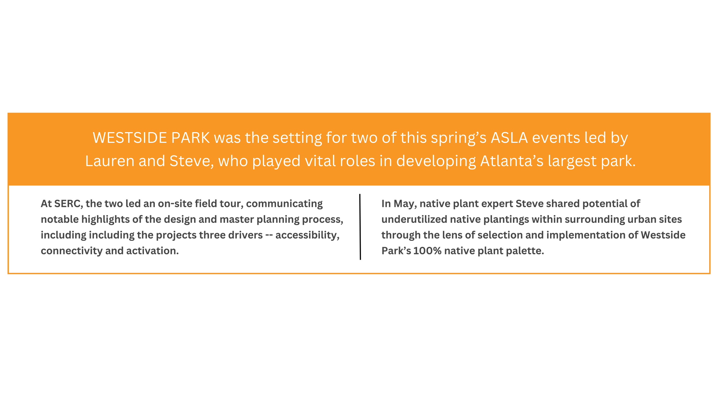 This spring’s American Society of Landscape Architects Southeast Regional Conference provided several opportunities for our team to share innovative concepts and insightful approaches with industry colleagues.