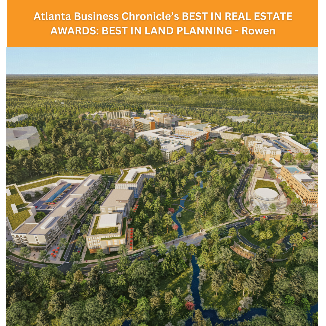 Atlanta Business Chronicle’s annual Best in Real Estate Awards identified ROWEN, the 2,000+ acre research epicenter driven by a focus on environment, agriculture and medicine, as the most significant land planning development for 2023. Spearheaded by Principals Bob Hughes, Todd Fuller and Steve Sanchez, Rowen’s goals are monumental, with plans to create up to 100,000 jobs and $9 billion in ongoing labor income by full buildout.