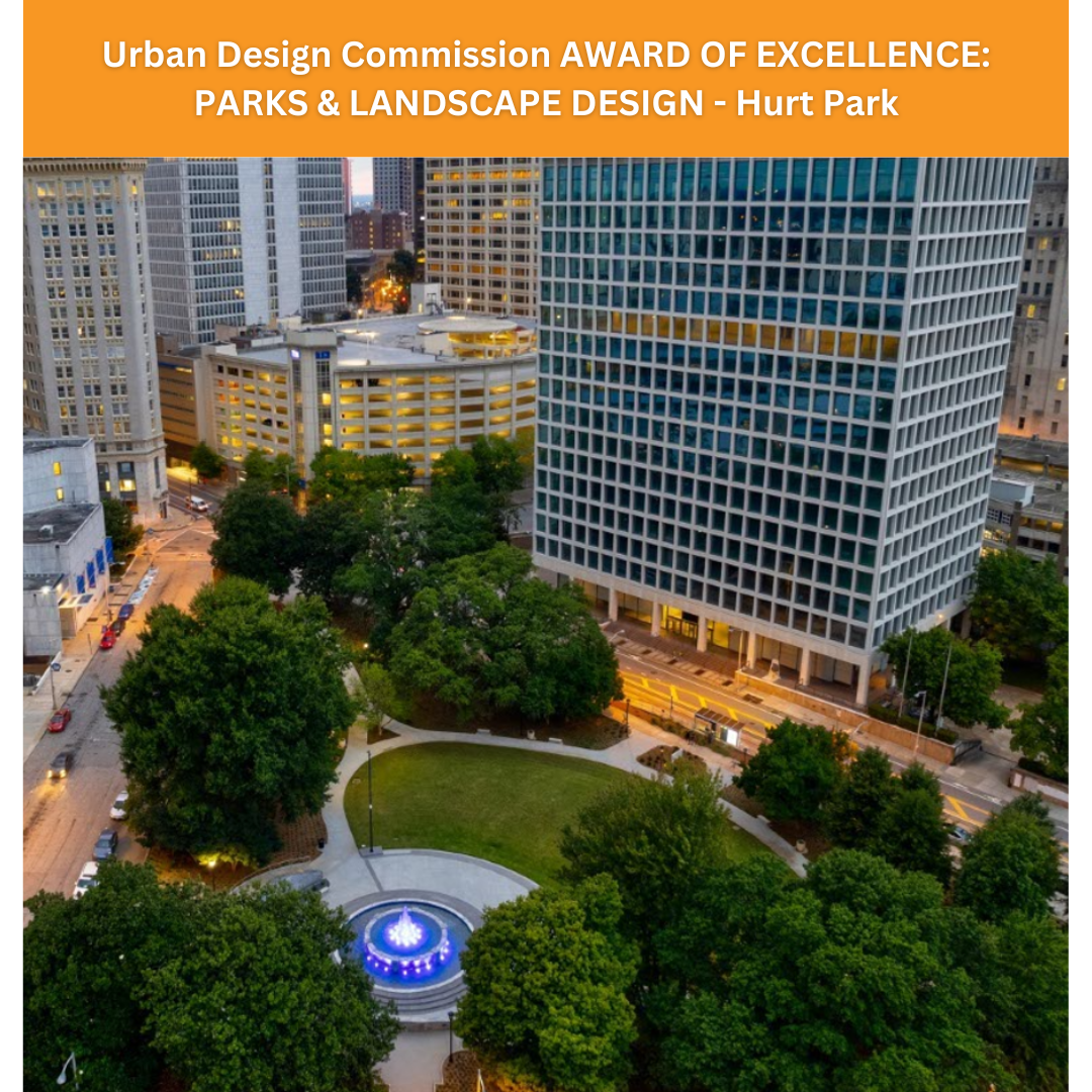 On June 23, HURT PARK was recognized by the Atlanta Urban Design Commission, with an Award of Excellence for Parks & Landscape Design. Hurt Park played a prominent role in downtown Atlanta morphing into a thriving city center, and later served as a venue in 1963 for Martin Luther King Jr to address civil rights activists. Principal Lauren Standish led the team alongside project partners to revitalize the site by designing a safe, equitable, inspirational park space.